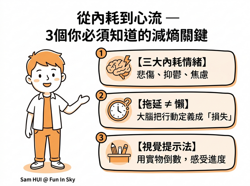 文章整理了幾個關鍵框架,包括三大內耗情緒、拖延的真實成因,以及一個簡單得出奇的「視覺提示法」。如果你也在找一套更清醒的行動方式,這篇值得一讀。